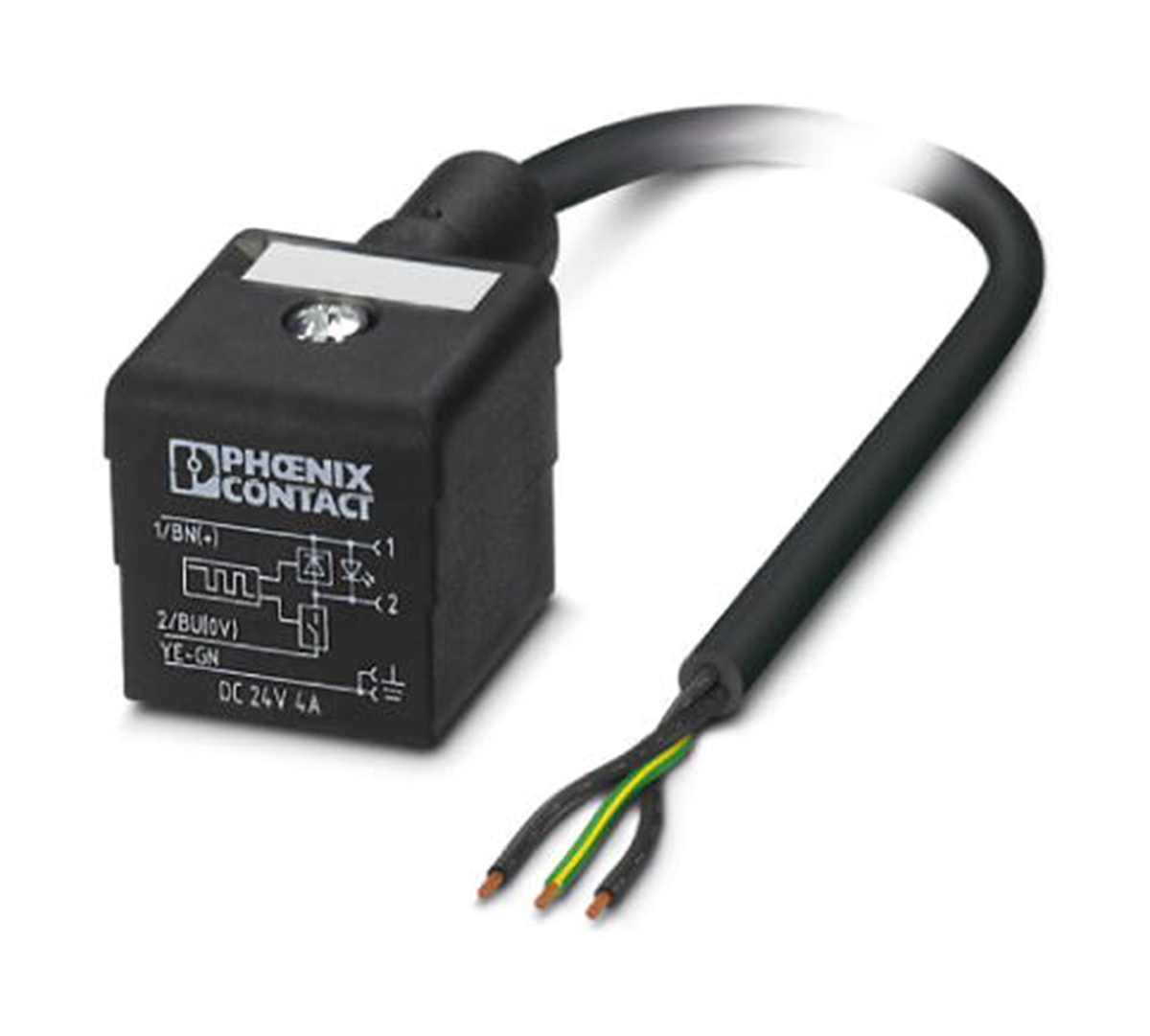This is Valve A 3-Pin 1.5m Cable & Connector manufactured by Phoenix Contact. The manufacturer part number is 1400827. Features 20 awg - American Wire Gauge. The product has a current rating of 4 a. Additionally, it is oil resistant yes . The product consists of 3 cores. Its outer diameter is 4.5mm. The sheath is constructed from durable and adorable pur material. Moreover, this cable has a twisted pair shape. It is IP rated with ip67. Moreover, the product has a nominal 24 v dc voltage rating. The connector 1 has a straight orientation. It bears 22.5 mm of minimum bend radius. The product has a halogen free fire behaviour. This connector 1 is a male. Its accurate length is 1.5m. The conductor is made from bare cu litz wires material. The product sac-3p, is a highly preferred choice for users. On the other hand, the gender of connector 1's housing is male. There are 3 contacts on connector 1. The sheath has an adorable black/grey colour. The product has 0.5 mm² cross section area. While the Connector 2 is unterminated. Connector 1 is din 43650 form a. It has a robust pp insulation material.