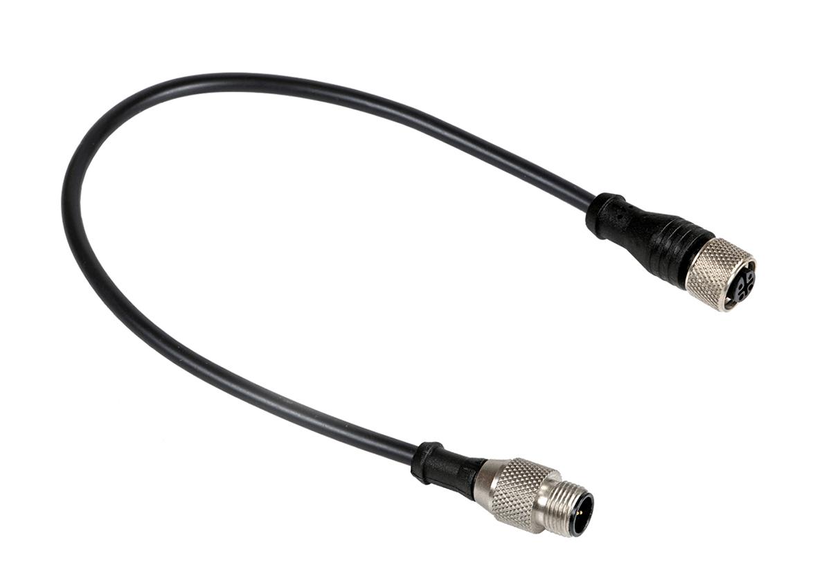 This is Cable assembly with a 3 Pole M12 Straight Male and 3 Pole M12 Female 4 A 250 V 2m Cable manufactured by RS Pro. The manufacturer part number is 877-1189. Features 22 awg - American Wire Gauge. The product has a current rating of 4 a. The product consists of 3 cores. Additionally, its connector 2 housing is of male gender . Its outer diameter is 4.5mm. The sheath is constructed from durable and adorable pur material. Moreover, this cable has a multicore shape. It is IP rated with ip67. Moreover, the product is unshielded . The product has -25 → +75 °c of operating temperature range. It has a maximum operating temperature of +75°c. Moreover, the product has a nominal 250 v voltage rating. The connector 1 has a straight orientation. This connector 1 is a female. Its accurate length is 2m. In addition, its connector 2 orientation is straight . Connector 2 is a male connector. On the other hand, the connector 2 has 3 contacts. On the other hand, the gender of connector 1's housing is female. There are 3 contacts on connector 1. The sheath has an adorable black colour. The product has 0.34 mm² cross section area. Whereas, the minimum operating temperature of the product is -25°c. While the Connector 2 is m12. Connector 1 is m12.