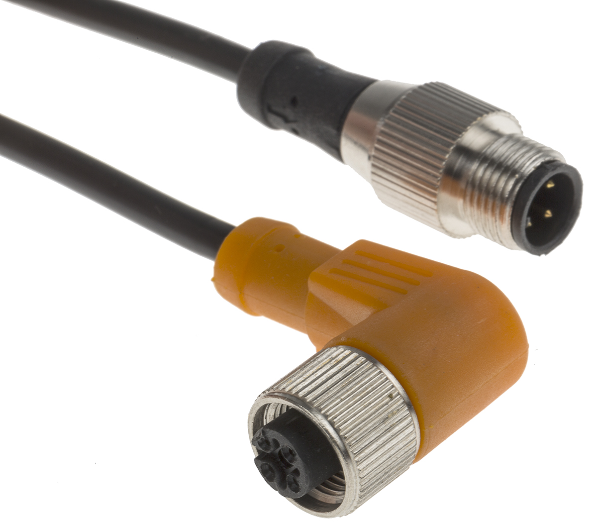This is Cable assembly with a 4 Pole Angled M12 Connector Male and 4 Pole M12 Female 4 A 30 V 2m Cable manufactured by RS Pro. The manufacturer part number is 877-1202. Features 22 awg - American Wire Gauge. The product has a current rating of 4 a. The product consists of 4 cores. Additionally, its connector 2 housing is of male gender . Its outer diameter is 4.9mm. The sheath is constructed from durable and adorable pur material. Moreover, this cable has a multicore shape. It is IP rated with ip67. Moreover, the product is unshielded . The product has -25 → +75 °c of operating temperature range. It has a maximum operating temperature of +75°c. Moreover, the product has a nominal 30 v voltage rating. The connector 1 has a right angle orientation. This connector 1 is a female. Its accurate length is 2m. In addition, its connector 2 orientation is straight . Connector 2 is a male connector. On the other hand, the connector 2 has 4 contacts. On the other hand, the gender of connector 1's housing is female. There are 4 contacts on connector 1. The sheath has an adorable black colour. The product has 0.34 mm² cross section area. Whereas, the minimum operating temperature of the product is -25°c. While the Connector 2 is m12. Connector 1 is m12.