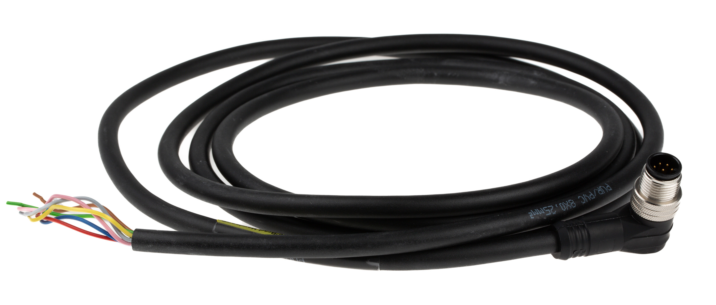 This is Right Angle M12 to Unterminated Cable assembly 8 Core 2m Cable manufactured by Brad from Molex. The manufacturer part number is 1200651800. Features 24 awg - American Wire Gauge. The product has a current rating of 2 a. Moreover, the product has a nominal 30 v voltage rating. The product consists of 8 cores. The sheath is constructed from durable and adorable pur material. There are 8 contacts on connector 1. It is IP rated with ip67. Moreover, the product is unshielded . It has a maximum operating temperature of +80°c. The product has -30 → +80 °c of operating temperature range. The connector 1 has a right angle orientation. This connector 1 is a male. Its accurate length is 2m. The conductor is made from copper alloy material. The product micro-change, is a highly preferred choice for users. On the other hand, the gender of connector 1's housing is male. The product is coded with a. The sheath has an adorable black colour. The product has 0.25 mm² cross section area. Whereas, the minimum operating temperature of the product is -30°c. While the Connector 2 is unterminated. Connector 1 is m12.