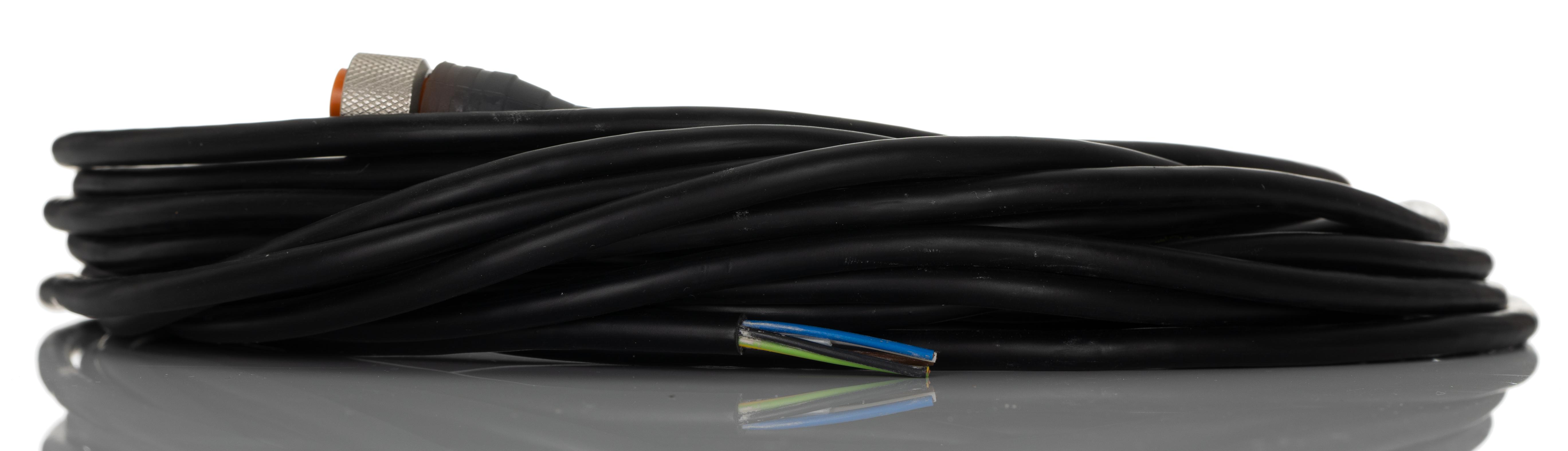 This is RKT Series Straight M12 to Unterminated Cordset 5 Core 10m Cable manufactured by Lumberg Automation. The manufacturer part number is 51489 RKT 5-289/10 M. The product has a current rating of 4 a. The conductor has 10 mω resistance. Additionally, it is oil resistant yes . The product consists of 5 cores. Its outer diameter is 5.5mm. Furthermore, the product is shielded with unshielded. The product complies with all safety standards, such as iec 60332-1-2. Moreover, this cable has a round shape. Moreover, the product has a nominal 60 v voltage rating. Moreover, the product is unshielded . The product has -40 → +90 °c of operating temperature range. It has a maximum operating temperature of +90°c. It is IP rated with ip65, ip67. The connector 1 has a straight orientation. It bears 5 x d (fixed inst), 10 x d (flexible inst) of minimum bend radius. The product has a iec 60332-1 fire behaviour. This connector 1 is a female. Its accurate length is 10m. Additionally, it contains 5 strands. The sheath is constructed from durable and adorable polyvinyl chloride pvc material. The conductor is made from copper material. The product rkt, is a highly preferred choice for users. There are 5 contacts on connector 1. The product is coded with a. The sheath has an adorable black colour. The product has 0.34 mm² cross section area. Whereas, the minimum operating temperature of the product is -40°c. While the Connector 2 is unterminated. Connector 1 is m12. It has a robust pvc insulation material.