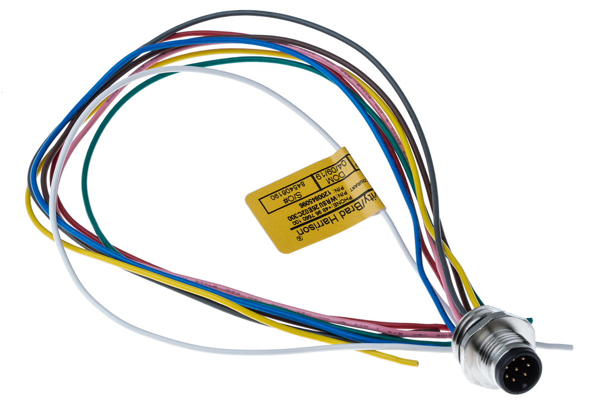 This is Ultra-Lock Series Straight M12 to Unterminated Cable assembly 8 Core 300mm Cable manufactured by Brad from Molex. The manufacturer part number is 1200845096. Features 24 awg - American Wire Gauge. The product has a current rating of 2 a. The product consists of 8 cores. The product complies with all safety standards, such as china rohs. Moreover, this cable has a circular shape. It is IP rated with ip69k. Moreover, the product is unshielded . The product has -25 → +90 of operating temperature range. It has a maximum operating temperature of +90°c. Moreover, the product has a nominal 30 v ac, 36 v dc voltage rating. The connector 1 has a straight orientation. This connector 1 is a male. Its accurate length is 300mm. The product is available in panel mount configuration. The product ultra-lock, is a highly preferred choice for users. On the other hand, the gender of connector 1's housing is male. There are 8 contacts on connector 1. The product is coded with a. The product has 0.25 mm² cross section area. Whereas, the minimum operating temperature of the product is -25°c. While the Connector 2 is unterminated. Connector 1 is m12.