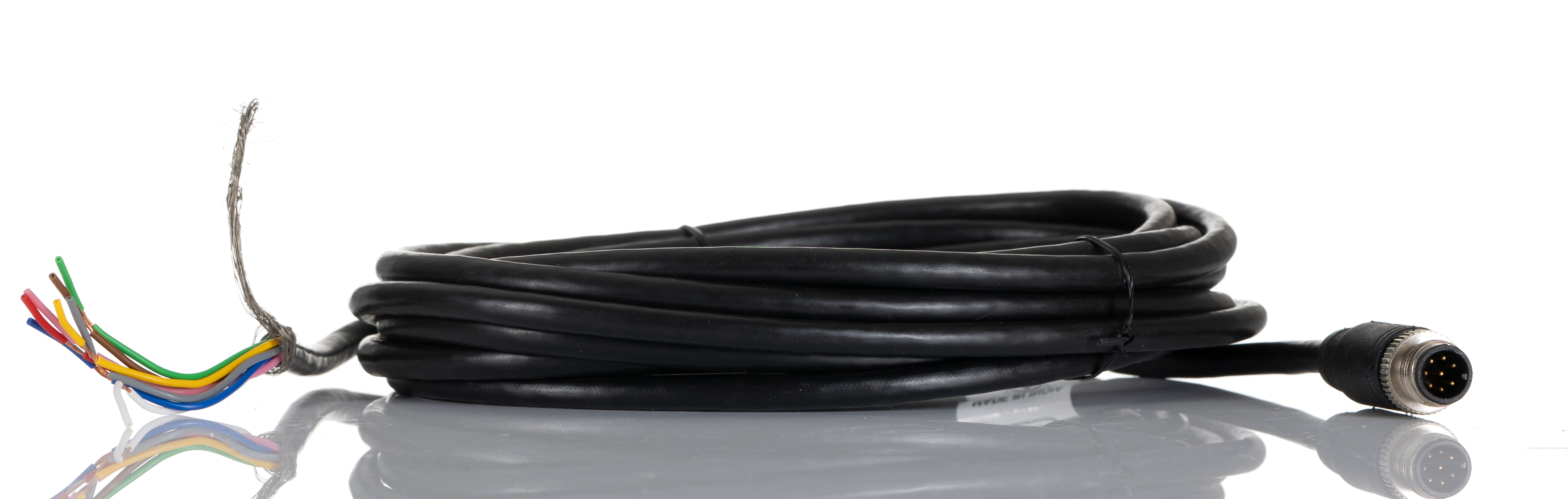 This is Straight Male M12 to Unterminated Cable Assembly 5m manufactured by RS PRO. The manufacturer part number is 250-0660. It has a maximum operating temperature of +75°c. Furthermore, the product is shielded with 80% braid. The sheath is constructed from durable and adorable pvc material. It is IP rated with ip67. The product cbm12, is a highly preferred choice for users. Moreover, the product has a nominal 30 v voltage rating. Moreover, this cable has a multicore shape. The product is coded with a. This connector 1 is a male. The sheath has an adorable black colour. Its accurate length is 5m. The product has 0.25mm² cross section area. Whereas, the minimum operating temperature of the product is -25°c. The product consists of 8 cores. While the Connector 2 is unterminated. The product has a current rating of 2 a. The connector 1 has a straight orientation. Connector 1 is m12. Its outer diameter is 6.0mm. Moreover, the product is shielded .