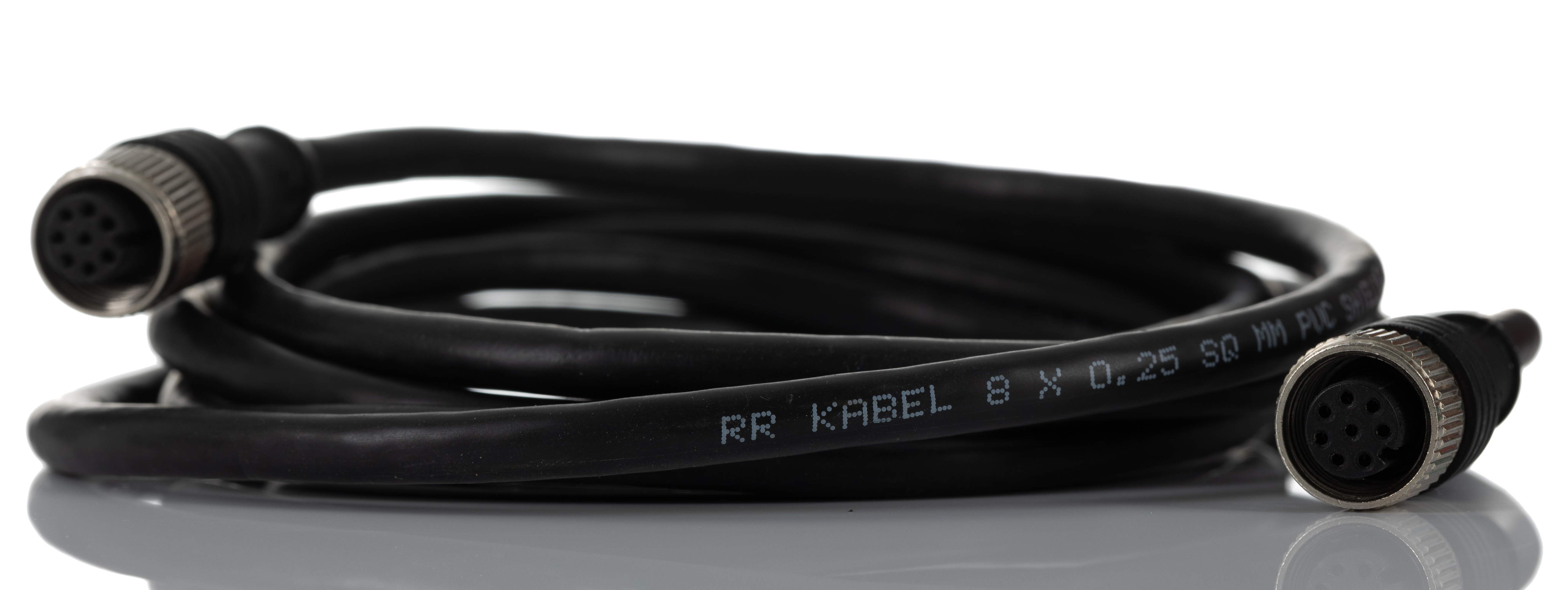 This is Straight Female M12 to Straight Female M12 Cable Assembly 10m manufactured by RS PRO. The manufacturer part number is 250-0699. The product has a current rating of 2 a. The product consists of 8 cores. Its outer diameter is 6.0mm. Furthermore, the product is shielded with 80% braid. The sheath is constructed from durable and adorable pvc material. Moreover, this cable has a multicore shape. It is IP rated with ip67. Moreover, the product is shielded . It has a maximum operating temperature of +75°c. Moreover, the product has a nominal 30 v voltage rating. The connector 1 has a straight orientation. This connector 1 is a female. Its accurate length is 10m. In addition, its connector 2 orientation is straight . Connector 2 is a female connector. The product cdf12s, is a highly preferred choice for users. The product is coded with a. The sheath has an adorable black colour. The product has 0.25mm² cross section area. Whereas, the minimum operating temperature of the product is -25°c. While the Connector 2 is m12. Connector 1 is m12.