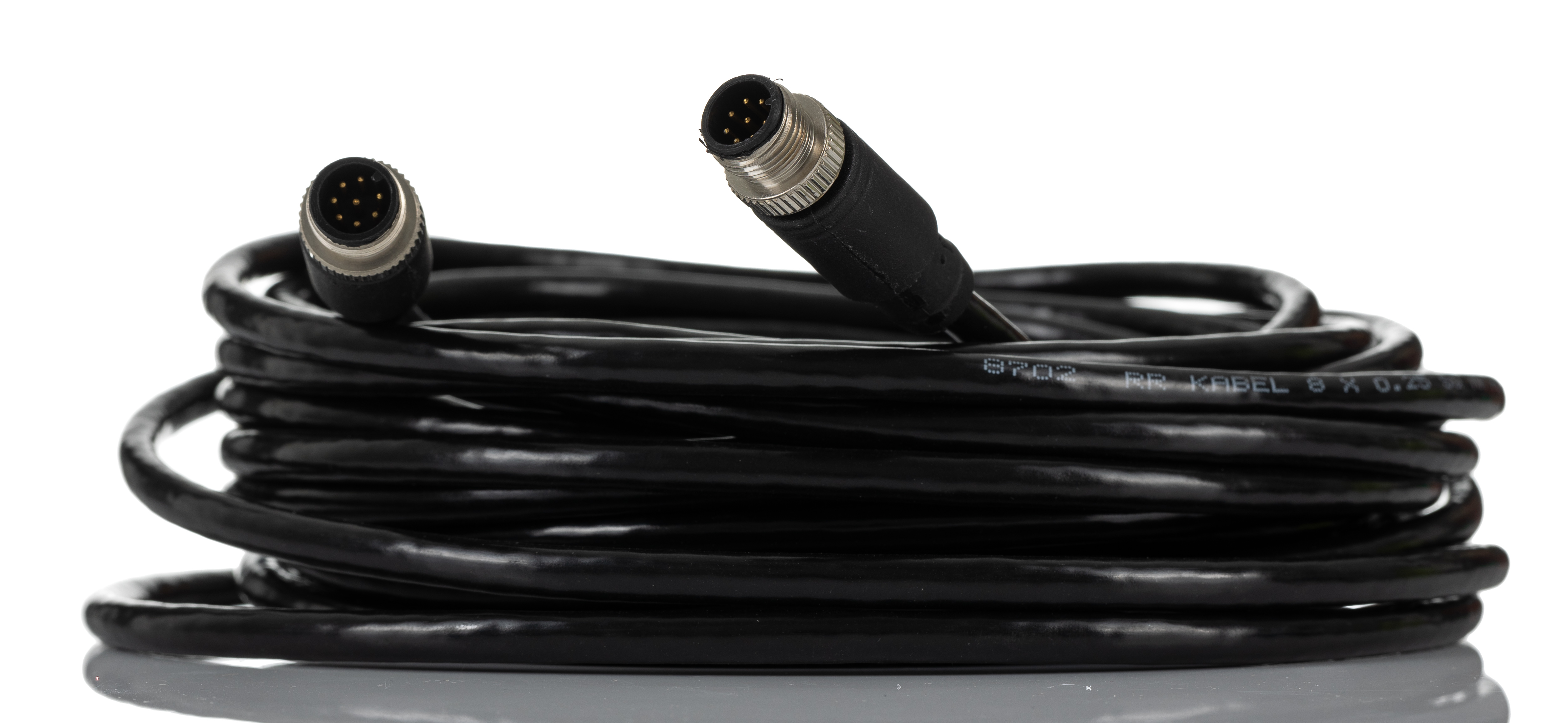 This is Straight Male M12 to Straight Male M12 Cable Assembly 10m manufactured by RS PRO. The manufacturer part number is 250-0731. The product has a current rating of 2 a. The product consists of 8 cores. Its outer diameter is 5.9mm. Furthermore, the product is shielded with braid. The sheath is constructed from durable and adorable pur material. Moreover, this cable has a multicore shape. It is IP rated with ip67. Moreover, the product is shielded . It has a maximum operating temperature of +75°c. Moreover, the product has a nominal 30 v voltage rating. The connector 1 has a straight orientation. This connector 1 is a male. Its accurate length is 10m. In addition, its connector 2 orientation is straight . Connector 2 is a male connector. The product cdm12s, is a highly preferred choice for users. The product is coded with a. The sheath has an adorable black colour. The product has 0.25mm² cross section area. Whereas, the minimum operating temperature of the product is -25°c. While the Connector 2 is m12. Connector 1 is m12.