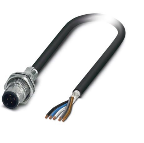 This is Straight Male M12 to Connecter 500mm manufactured by Phoenix Contact. The manufacturer part number is 1550164. The connector 1 has a straight orientation. This connector 1 is a male. The sheath has an adorable black, grey colour. Its accurate length is 500mm. The product consists of 5 cores. Connector 1 is m12.