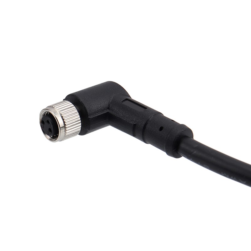 This is Right Angle Female 3 way M8 to Cable 5m manufactured by RS PRO. The manufacturer part number is 282-5365. The sheath is constructed from durable and adorable polyurethane pur material. There are 3 contacts on connector 1. The connector 1 has a right angle orientation. This connector 1 is a female. The sheath has an adorable black colour. Its accurate length is 5m. The product consists of 3 cores. Connector 1 is m8.