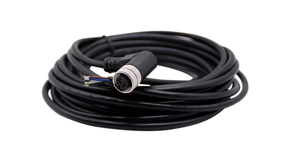 This is Right Angle Female 4 way M12 to Straight Connector & Cable 5m manufactured by RND. The manufacturer part number is RND 205-01225. In addition, its connector 2 orientation is straight . The sheath is constructed from durable and adorable polyvinyl chloride pvc material. There are 4 contacts on connector 1. The product rnd 205, is a highly preferred choice for users. This connector 1 is a female. The sheath has an adorable black colour. Its accurate length is 5m. The product has 0.34 mm² cross section area. The connector 1 has a right angle orientation. Connector 1 is m12.