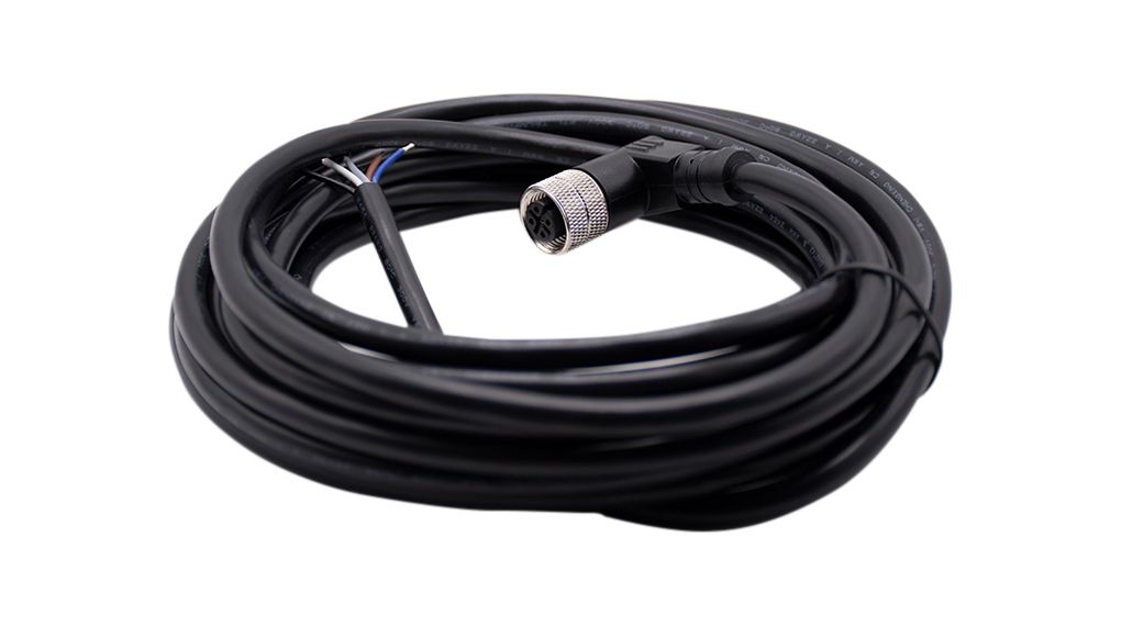 This is Right Angle Female 5 way M12 to Straight Connector & Cable 5m manufactured by RND. The manufacturer part number is RND 205-01226. In addition, its connector 2 orientation is straight . The sheath is constructed from durable and adorable polyvinyl chloride pvc material. There are 5 contacts on connector 1. The product rnd 205, is a highly preferred choice for users. This connector 1 is a female. The sheath has an adorable black colour. Its accurate length is 5m. The product has 0.34 mm² cross section area. The connector 1 has a right angle orientation. Connector 1 is m12.