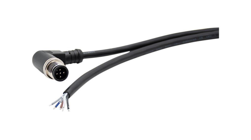 This is Right Angle Male 5 way M12 to Straight Connector & Cable 2m manufactured by RND. The manufacturer part number is RND 205-01230. In addition, its connector 2 orientation is straight . The sheath is constructed from durable and adorable polyvinyl chloride pvc material. There are 5 contacts on connector 1. The product rnd 205, is a highly preferred choice for users. This connector 1 is a male. The sheath has an adorable black colour. Its accurate length is 2m. The product has 0.34 mm² cross section area. The connector 1 has a right angle orientation. Connector 1 is m12.