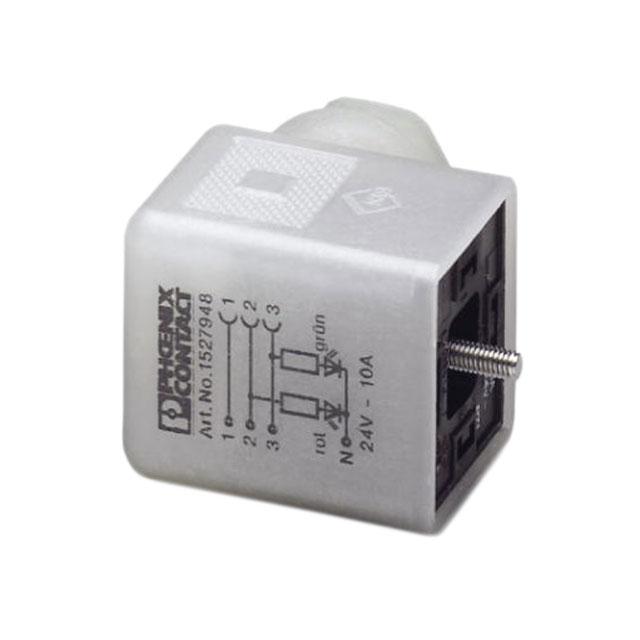 This is manufactured by Phoenix Contact. The manufacturer part number is 1527948. It has a light indicator included yes . Moreover, the product has a nominal 24 v ac voltage rating. It is assigned with possible HTSUS value of 8536.69.8000. The product is rohs compliant. It is a type of valve connector accessory. Its typical moisture sensitivity level is 1 (unlimited). In addition, bulk is the available packaging type of the product. The product is suitable for use with hydraulic, pneumatic, electromagnetic and sensors. It has a long 4 weeks standard lead time. The phoenix contact's product offers user-desired applications. The product is designated with the ear99 code number.