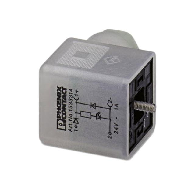 This is manufactured by Phoenix Contact. The manufacturer part number is 1533314. It has a light indicator included yes . The product has a current rating of 2a. It is of din 43650 a type . The product is available in cable mount configuration. It is IP rated with ip65. In addition, female is the available "Gender" of the product. Moreover, the product has a nominal 24 v voltage rating. While the pole has 3p format. It allows screw down termination method. The diameter of the cable includes 6 → 8mm. Moreover, it has pg9 size cable gland . The product sacc, is a highly preferred choice for users. It includes a protective circuit yes . It is assigned with possible HTSUS value of 8544.42.9090. The product is rohs3 compliant. It is a type of valve connector accessory. In addition, it is reach affected. Its typical moisture sensitivity level is 1 (unlimited). In addition, bulk is the available packaging type of the product. The product is suitable for use with hydraulic, pneumatic, electromagnetic and sensors. It has a long 10 weeks standard lead time. The phoenix contact's product offers user-desired applications. The product is designated with the ear99 code number.