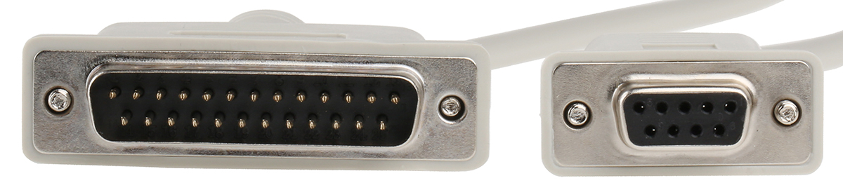 This is 1.8m Male DB25 to Female RS232 Serial Cable Assembly manufactured by Roline. The manufacturer part number is 11.01.4618-50. Connector 2 is a female connector. This connector 1 is a male. Its accurate length is 1.8m. While the Connector 2 is 9 pin d-sub. Connector 1 is 25 pin d-sub.