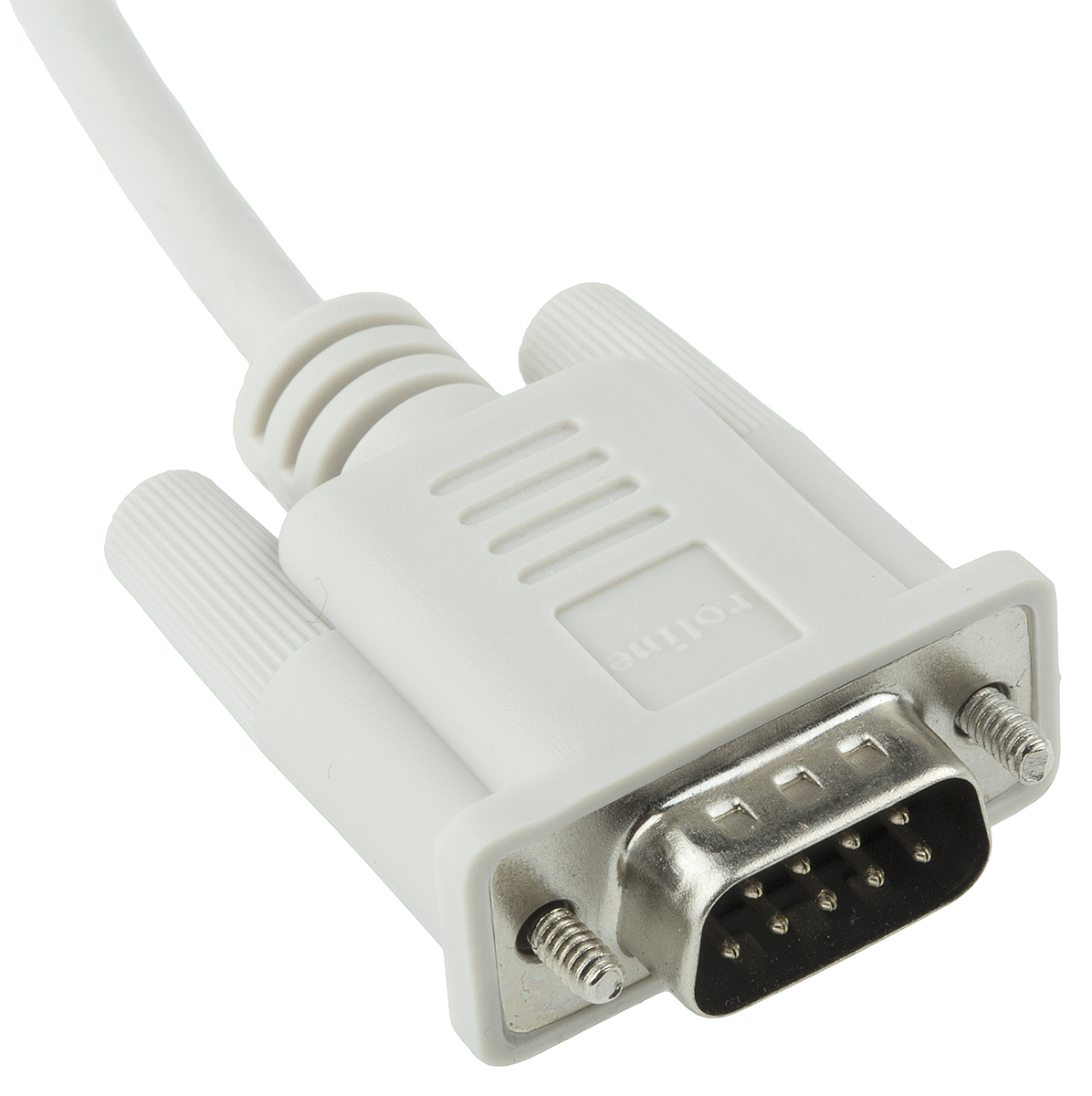 This is Serial Cable Assembly 3m Male to Female DB9 to DB9 manufactured by Roline. The manufacturer part number is 11.01.6230-50. Connector 2 is a female connector. This connector 1 is a male. The sheath has an adorable grey colour. Its accurate length is 3m. While the Connector 2 is 9 pin d-sub. Connector 1 is 9 pin d-sub.