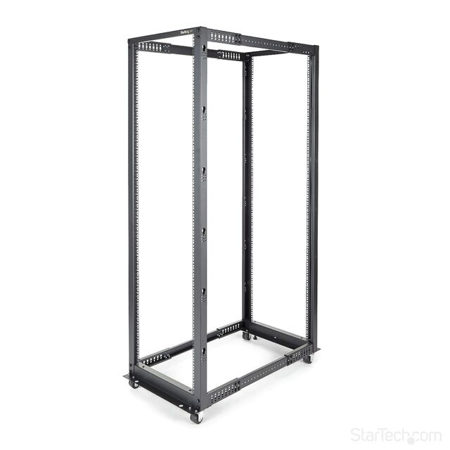 This is 42U Server Rack With Steel 4-Post Frame in Black manufactured by StarTech.com. The manufacturer part number is 4POSTRACK42. It includes 42u rack units . The typical product's weight is 38.5kg. It has a decent black colour. The product is made from highly stable and reliable steel. Moreover, it has 1970mm of overall height. The frame is designed as [Fram Type] type. Additionally, the product is designed with open rack, double frame Style. It is assigned with possible HTSUS value of 9403.10.0040. The product is rohs3 compliant. While the overall dimensions include - 44.100" l x 23.600" w x 77.600" h (1120.14mm x 599.44mm x 1971.04mm). It comes in open rack configuration. It is integrated with a doorless door. The product is made from highly stable and reliable metal, steel. In addition, it is reach affected. The startech.com's product offers user-desired applications. It consists of two pair of mounting rails. Its typical moisture sensitivity level is vendor undefined. Ventilation Options: non-vented. It has a long 1 weeks standard lead time. It has a classic black colour. In addition, box is the available packaging type of the product. The product comprises 42u units. The product is designated with the ear99 code number.