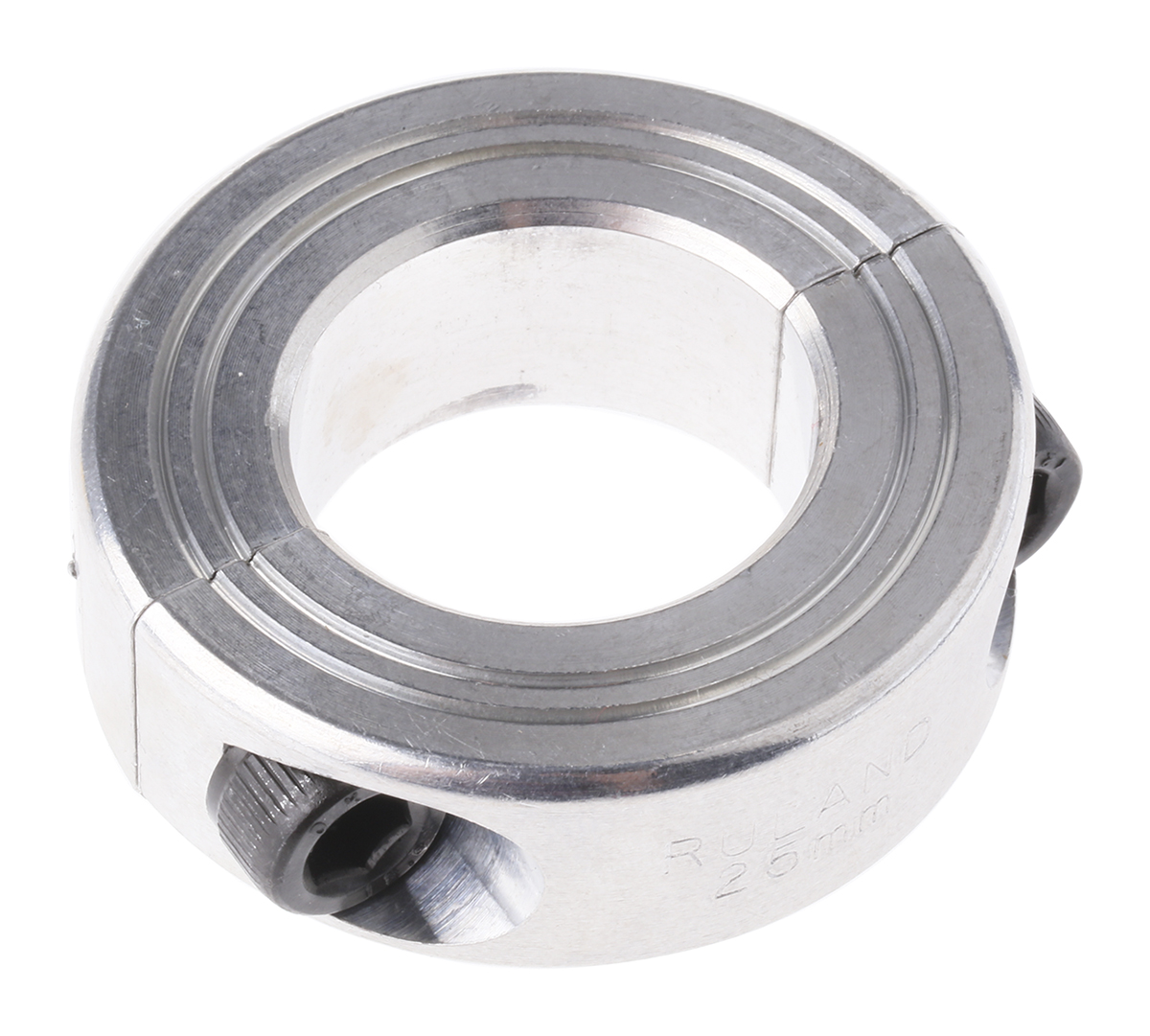 This is Collar Two Piece Clamp Screw Bore 25mm OD 45mm W 15mm Aluminium manufactured by Ruland. The manufacturer part number is MSP-25-A. Additionally, it has a standard m6 threaded bore size . A quality product with a nice gloss finish. The product has 45mm external diameter. The product is made from highly stable and reliable aluminium. It is offered in two piece . Furthermore, the product is 15mm wide. The diameter of the shaft is 25mm. It is designed with clamp screw fastening .