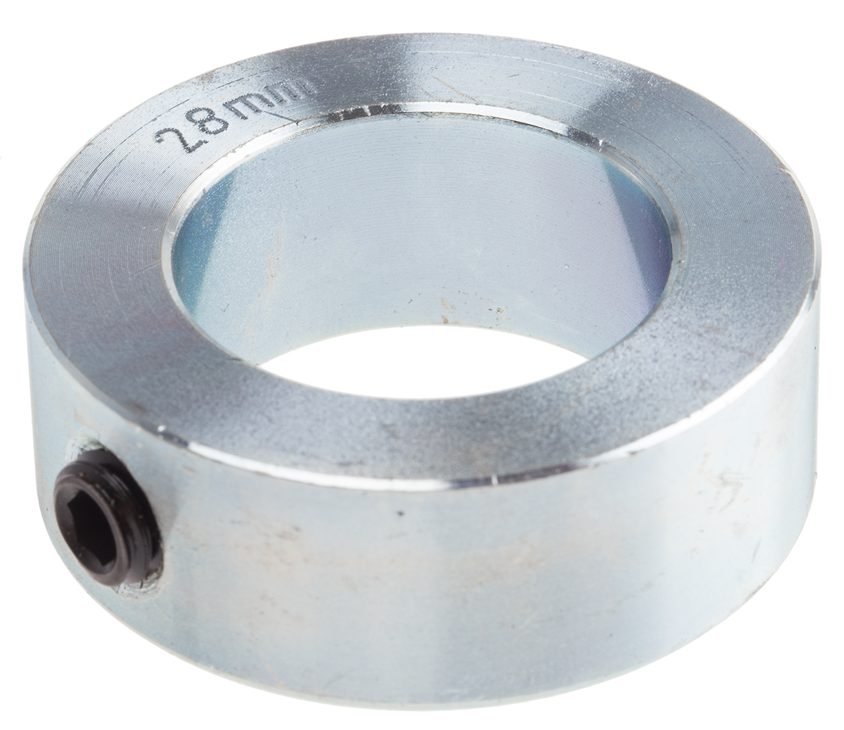 This is Collar One Piece Screw Bore 28mm OD 45mm W 16mm Steel manufactured by RS Pro. The manufacturer part number is 823-6985. It is single wide . Additionally, it has a standard m8 threaded bore size . A quality product with a nice zinc plated finish. The product is made from highly stable and reliable steel. It is offered in one piece . Furthermore, the product is 16mm wide. The diameter of the shaft is 28mm. The product has 45mm external diameter. It is designed with set screw fastening .