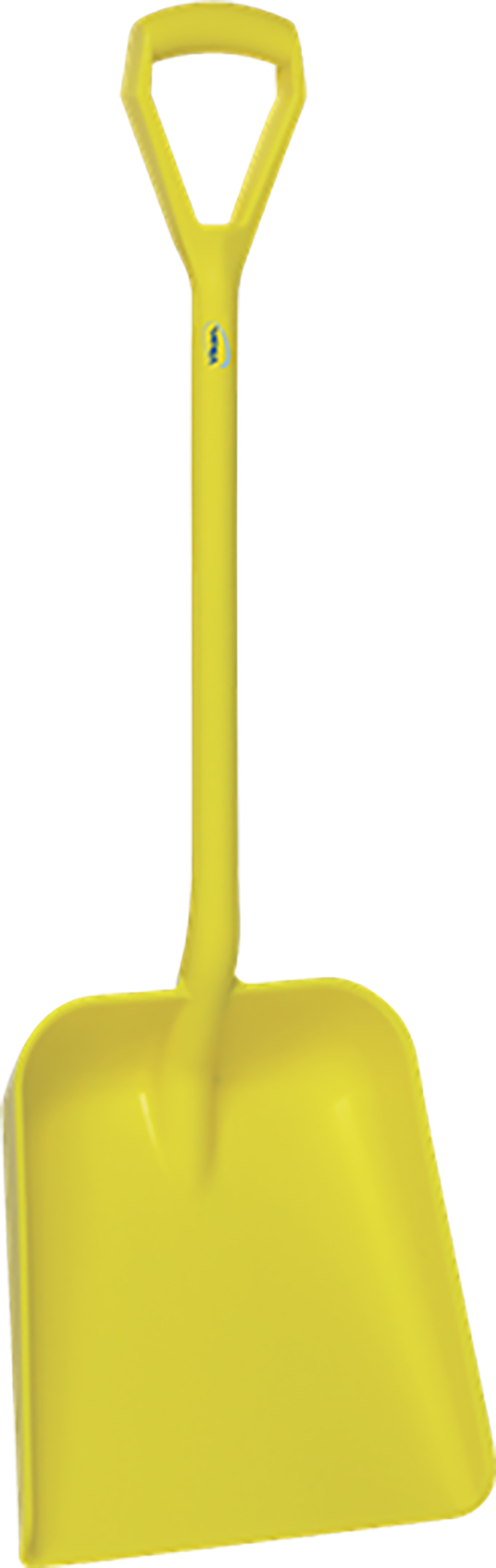 This is Large One Piece Shovel D Grip 379 x 345 manufactured by Vikan. The manufacturer part number is 56236. The product is food processing safe yes . Its blade is 345mm in width . It has a decent yellow colour. Its comfortable handle is manufactured from durable polypropylene material. It is 1150mm long. The blade has a length of 379mm. shovel is a versatile product designed to provide user-defined applications. Its sub type is square shovel . In addition, its blade is made up of polypropylene material .
