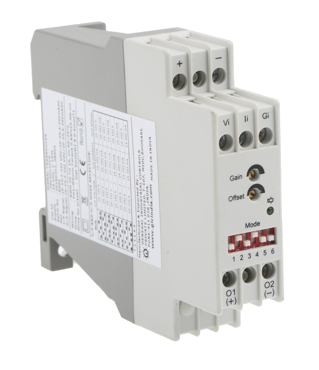 This is 2SC Analogue to Analogue Signal Conditioner manufactured by GIC. The manufacturer part number is 2SC3D11CC3. The product complies with all safety standards, such as ce, rohs. The product is available in din rail mount configuration. The product has -10 → +55°c of operating temperature range. Has a 0 → 10 v dc, 0 → 20 ma, 2 → 10 v dc, 4 → 20ma of output range. It has a/an signal isolator type module . Typical input range of 0 → 10 v dc, 0 → 20 ma, 2 → 10 v dc, 4 → 20ma. The input signal is a kind of current, voltage signal. Features 24v dc supply voltage. Whereas, the minimum operating temperature of the product is -10°c. The product features screw termination style. It has a maximum operating temperature of +55°c. The output signal is a kind of current, voltage.