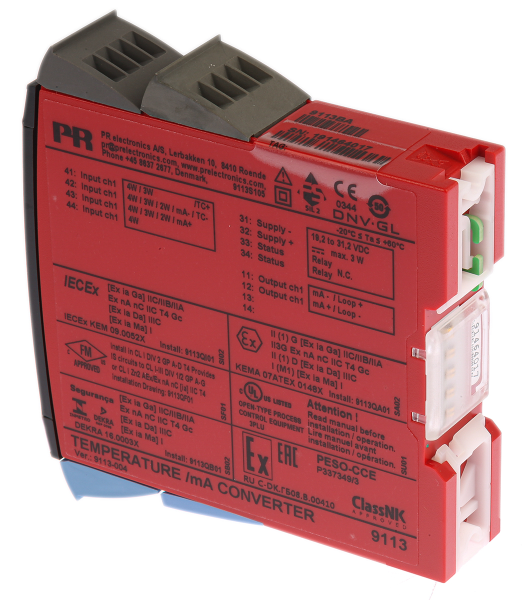 This is 1 Channel Temperature barrier with Analogue Output 250 V ac max manufactured by PR Electronics. The manufacturer part number is 9113BA. The output signal is a kind of current, relay. The product has -20 → +60°c of operating temperature range. The product 9100, is a highly preferred choice for users. It has a/an temperature converter type module . The product is certified with atex hazardous area certification. The input signal is a kind of current, rtd, thermocouple signal. Features 19.2 → 31.2v dc supply voltage. It has a maximum operating temperature of +60°c. Whereas, the minimum operating temperature of the product is -20°c.