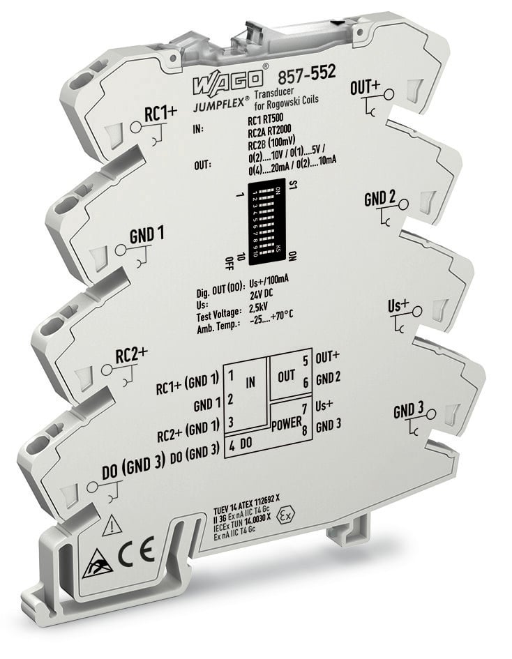 This is 857 Series Signal Conditioner Current Input Current Voltage Output 24V dc Supply manufactured by WAGO. The manufacturer part number is 857-552. The product 857, is a highly preferred choice for users. It has a/an current signal converter type module . Features 24v dc supply voltage. The output signal is a kind of current, voltage. The input signal is a kind of current signal.