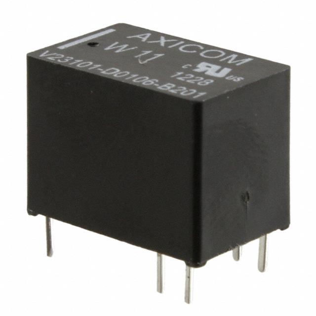 This is manufactured by TE Connectivity Potter & Brumfield Relays. The manufacturer part number is V23101D 106B201. It is assigned with possible HTSUS value of 8536.41.0020. The product is rohs3 compliant. The coil voltage of the product is 12vdc. Moreover, it has pc pin terminal style. In addition, it is reach unaffected. The product has -40°c ~ 85°c operating temperature range. It has a coil current of 17.2 ma. The coil is a non latching type. The product's switching voltage is 125vac, 120vdc - max. On the other hand, 9 vdc is the given crucial/must operating voltage. The te connectivity potter & brumfield relays's product offers user-desired applications. This is basically a general purpose. It also has a spdt (1 form c) contact form. Its typical moisture sensitivity level is 1 (unlimited). The operating time of the product is 7 ms. While the must release voltage is a 1.2 vdc. It has a long 39 weeks standard lead time. It has a contact current rating of 1.25 a. The product is available in through hole configuration. The product v23101, axicom, is a highly preferred choice for users. While 5 ms is its release time. In addition, tube is the available packaging type of the product. The product is designated with the ear99 code number. Moreover, it corresponds to v23101, a base product number of the product. The product is made from sturdy silver palladium (agpd), gold (au) materials.