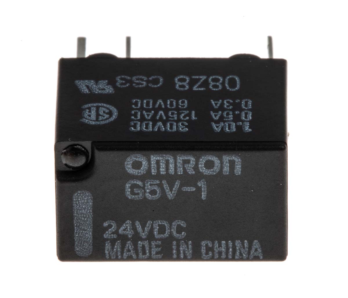 This is PCB Mount Signal Relay 24V dc Coil 2A Switching Current DPDT manufactured by Omron. The manufacturer part number is G5V-1 DC24. The given dimensions of the product include 12.5 x 10 x 7.5mm. The product offers long-lasting services of 10^5 operations. Applications Information involves signal. The terminal is a through hole type. It holds up to 3800ω coil resistance. Robust coil power of 150mw. While it carries 60v of maximum DC switching voltage. It bears a maximum 60 w of DC switching power. It has a maximum operating temperature of +70°c. It is integrated with 2a switching current. The coil voltage of the product is 24v dc. Whereas, the minimum operating temperature of the product is -40°c. The product has -40 → +70°c of operating temperature range. Latching Options - no. The contact is equipped with spdt configuration. Its accurate length is 10mm. The splendid features of the product include conforms to fcc part 68 requirements, bifurcated contacts. The product is available in pcb mount configuration. The product im, is a highly preferred choice for users. The product comes in 7.5mm depth. In addition, the height is 10mm. It has a minimum 2 a DC switching current . It has a maximum AC switching voltage of 125v. It also features an AC switching power of 62.5va. It has equipped with 2 poles. The product is made from sturdy gold plated materials.