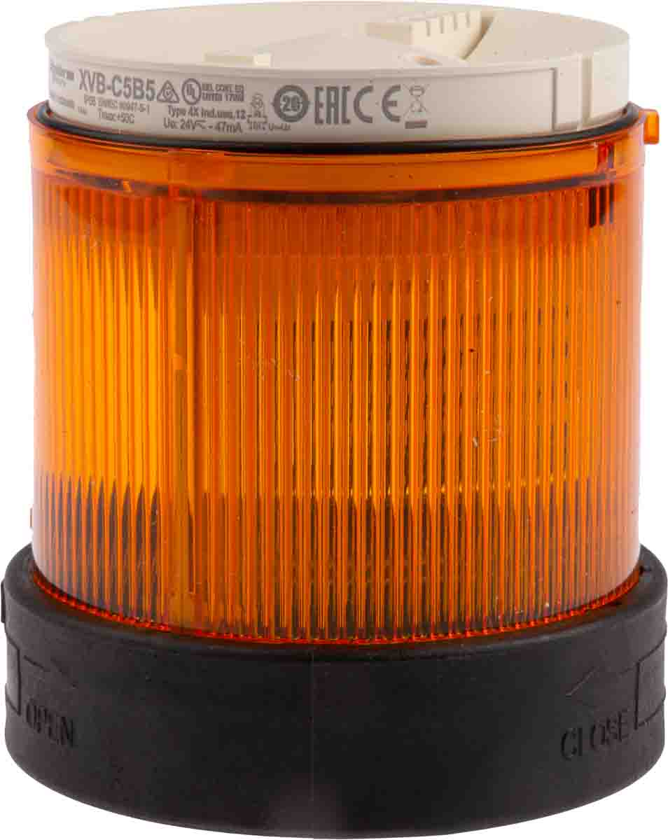 This is Harmony Orange LED Beacon Flashing Light Effect 70mm Base 24 V ac/dc manufactured by Schneider Electric. The manufacturer part number is XVBC5B5. The housing has an adorable black colour. Better World Verification Options - green premium. The lens has an adorable amber colour. The product is integrated with a led bulb. It is IP rated with ip65. The product harmony xvb, is a highly preferred choice for users. In addition, the height is 63mm. Is it a better world product? yes. This product harbours ac, dc current. It features harmony range. The product has +50°c maximum temperature. It includes a lamp yes . While its minimum temperature is -25°c. This [Component type] component is indispensable for product's effective functionality. The product provides a flashing lighting effect. The base diameter includes 70mm. Features 24 v ac/dc supply voltage.