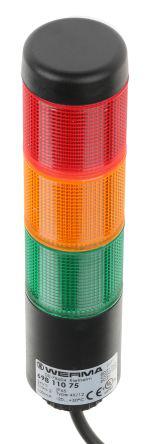 This is Kompakt LED Beacon Tower 3 Light Elements Green Red Yellow 24 V ac/dc manufactured by Werma. The manufacturer part number is 69811075. The housing has an adorable black colour. It consumes 150ma current . The lens has an adorable green, red, yellow colour. The product is integrated with a led bulb. It includes a no sounder component sounder component . The product kompakt, is a highly preferred choice for users. Whereas, the connection cable is 2m in length . In addition, the height is 174.5mm. The product is available in base mount style. It has about 3 light elements . The product has +50°c maximum temperature. Features 24 v ac/dc supply voltage. While its minimum temperature is -20°c. The product provides a steady lighting effect. The base diameter includes 37.5mm. It allows cable connection type.