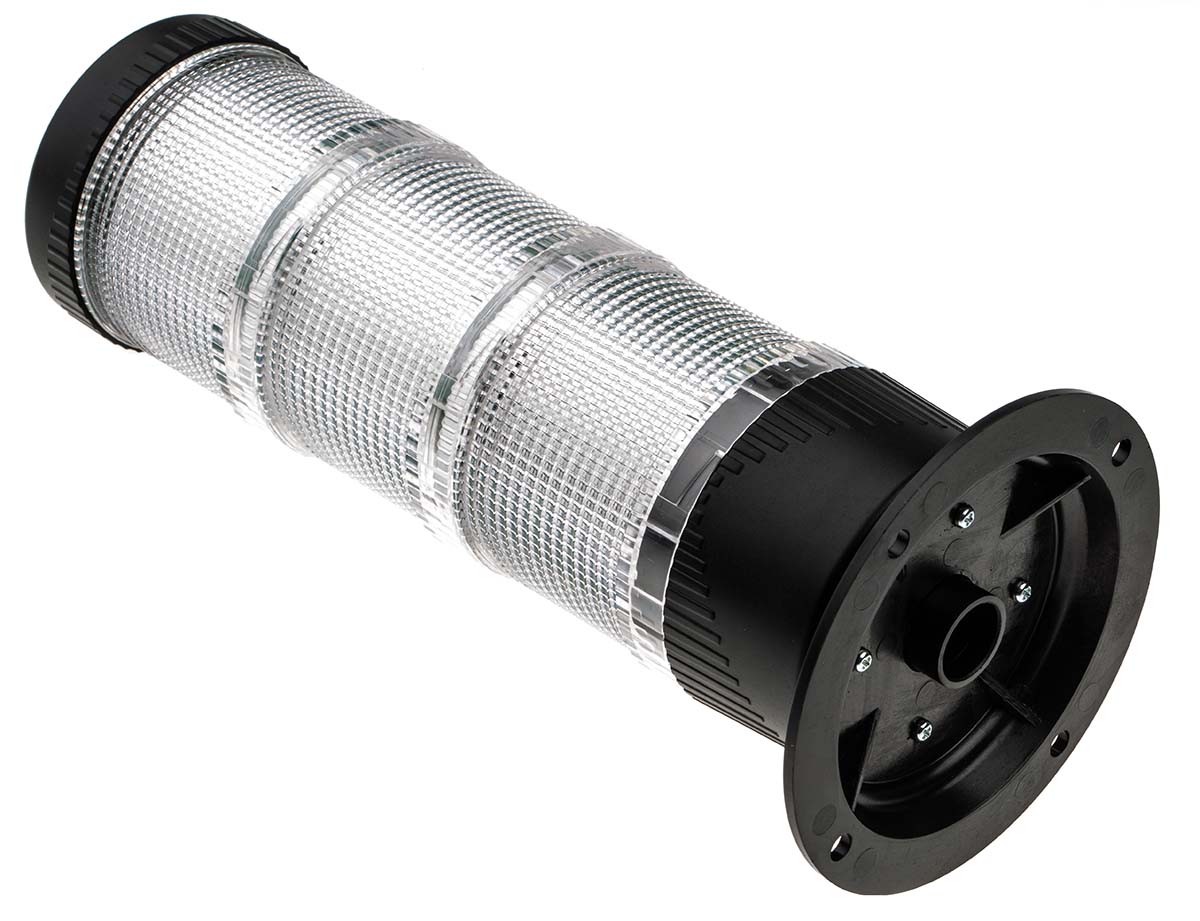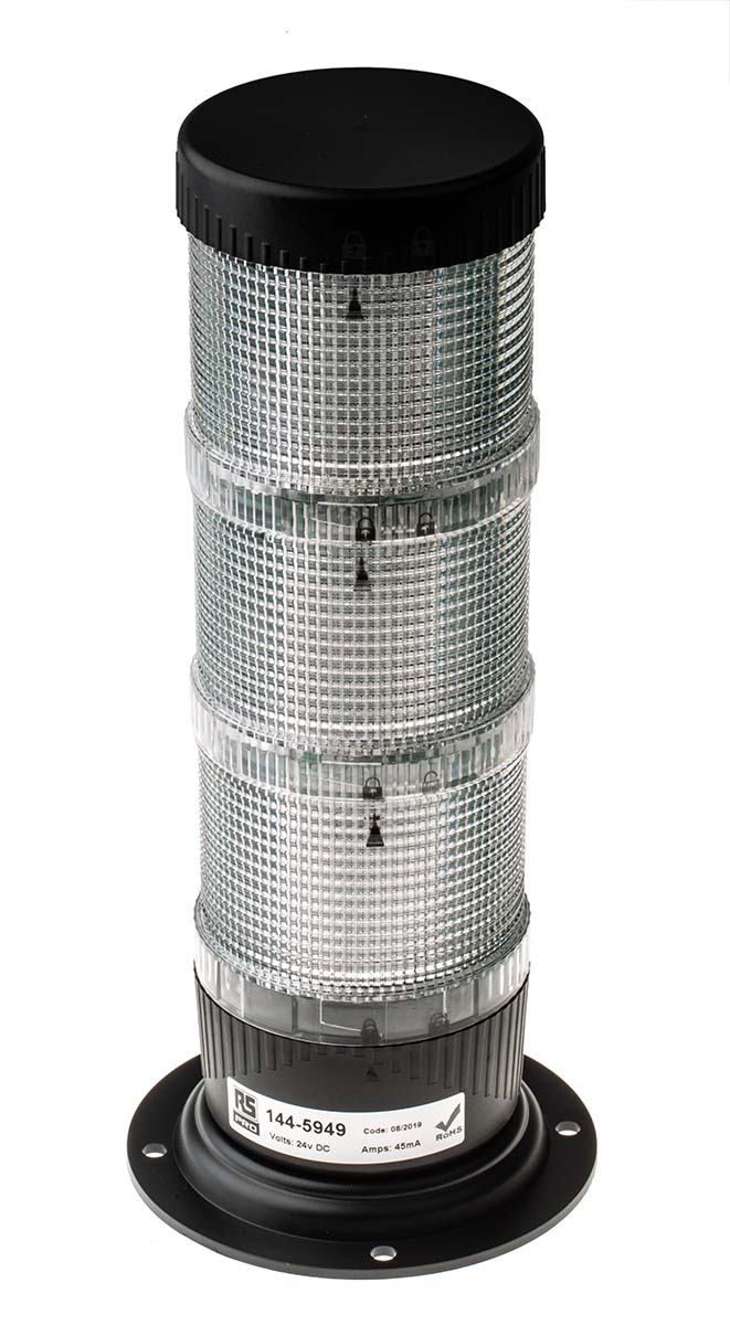 This is LED Multiple Effect Beacon LED-TLM Series Amber Green Red Surface Mount 24 V dc manufactured by RS PRO. The manufacturer part number is 144-5949. The housing has an adorable black colour. It consumes 45ma current . The lens has an adorable red/green/amber colour. The product is integrated with a led bulb. It is IP rated with ip65. The product led-tlm, is a highly preferred choice for users. The product provides a steady lighting effect. It is multifunctional yes . The LED has an adorable amber, green, red colour. The product is available in surface mount style. This product harbours dc current. It has about 3 light elements . The product has +55°c maximum temperature. Features 24 v dc supply voltage. While its minimum temperature is -25°c. In addition, the height is 56 (base)mm. The base diameter includes 100mm.