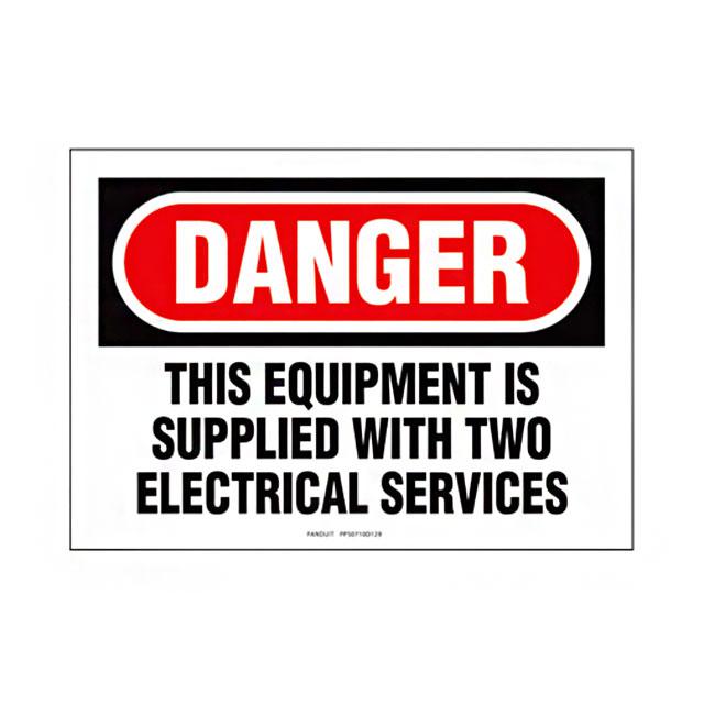This is manufactured by Panduit Corp. The manufacturer part number is PPS0710D129. Label with a size of 10.00" l x 7.00" w (254.0mm x 177.8mm). The product is rohs3 compliant. It is assigned with possible HTSUS value of 3926.90.9985. It has a classic black and red legend, white background colour. The product is made from highly stable and reliable polyester. Its typical moisture sensitivity level is not applicable. The product is designated with the ear99 code number.