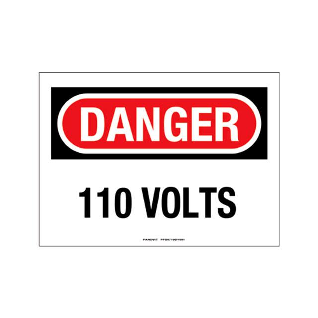 This is manufactured by Panduit Corp. The manufacturer part number is PPS0710DV001. Label with a size of 10.00" l x 7.00" w (254.0mm x 177.8mm). The product is rohs3 compliant. It is assigned with possible HTSUS value of 3926.90.9985. It has a classic black and red legend, white background colour. The product is made from highly stable and reliable polyester. Its typical moisture sensitivity level is not applicable. The product is designated with the ear99 code number.
