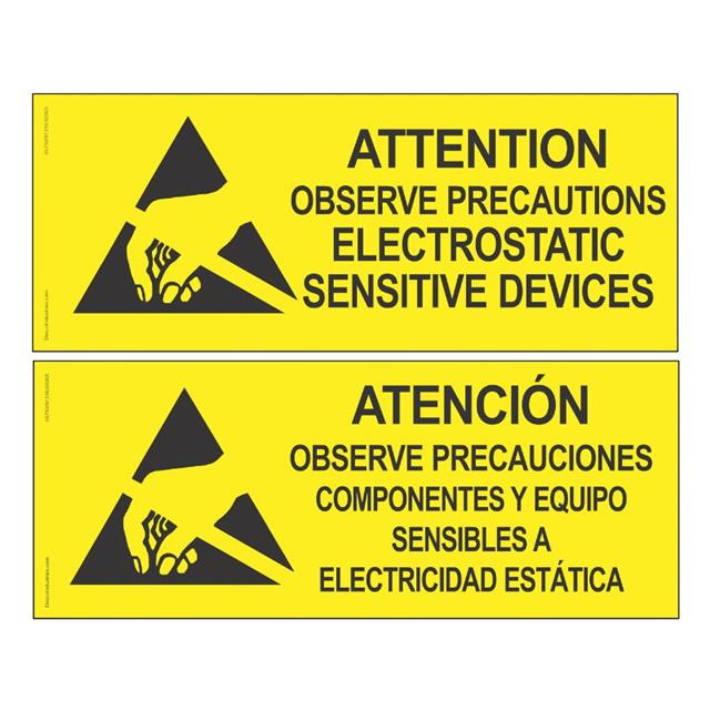 This is manufactured by Desco. The manufacturer part number is 06750. Label with a size of 10.00" l x 4.00" w (254.0mm x 101.6mm). The product is rohs3 compliant. It is assigned with possible HTSUS value of 4821.90.2000. It is shipped in bulk package . It has a classic black legend, yellow background colour. In addition, it is reach unaffected. Its typical moisture sensitivity level is not applicable. A bespoke label is a attention - observe precautions electrostatic sensitive devices label. The product is suitable for use with static sensitive. It has a long 3 weeks standard lead time. The product is designated with the ear99 code number.