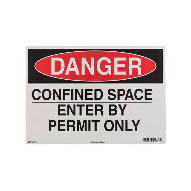 This is manufactured by HellermannTyton. The manufacturer part number is 597-00074. Label with a size of 10.00" l x 7.00" w (254.0mm x 177.8mm). It is assigned with possible HTSUS value of 3919.90.5060. It is shipped in bulk package . It has a classic black and red legend, white background colour. The product is made from highly stable and reliable vinyl. Its typical moisture sensitivity level is not applicable. A bespoke label is a danger. confined space enter by permit only label. The product is suitable for use with danger. It has a long 4 weeks standard lead time. Moreover, it corresponds to 597-00, a base product number of the product. The product is designated with the ear99 code number.