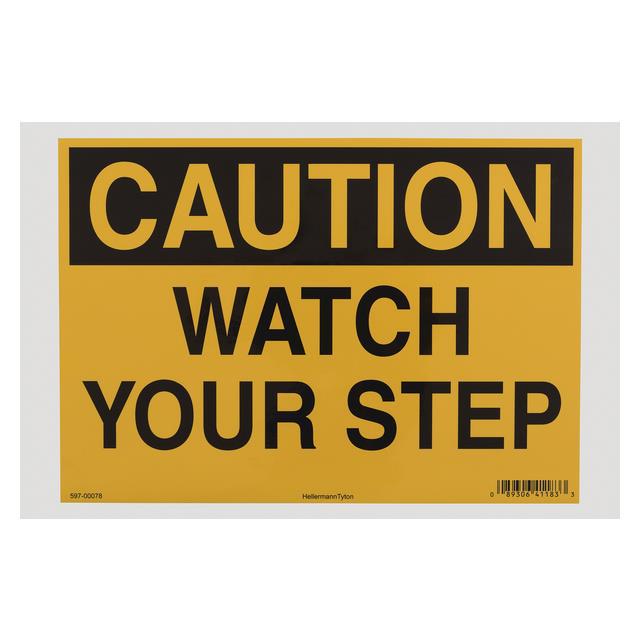This is manufactured by HellermannTyton. The manufacturer part number is 597-00098. Label with a size of 14.00" l x 10.00" w (355.6mm x 254.0mm). It is assigned with possible HTSUS value of 3919.90.5060. It has a classic black legend, yellow background colour. The product is made from highly stable and reliable vinyl. Its typical moisture sensitivity level is not applicable. In addition, bulk is the available packaging type of the product. A bespoke label is a caution. watch your step label. The product is suitable for use with warning. It has a long 4 weeks standard lead time. The hellermanntyton's product offers user-desired applications. Moreover, it corresponds to 597-00, a base product number of the product. The product is designated with the ear99 code number.
