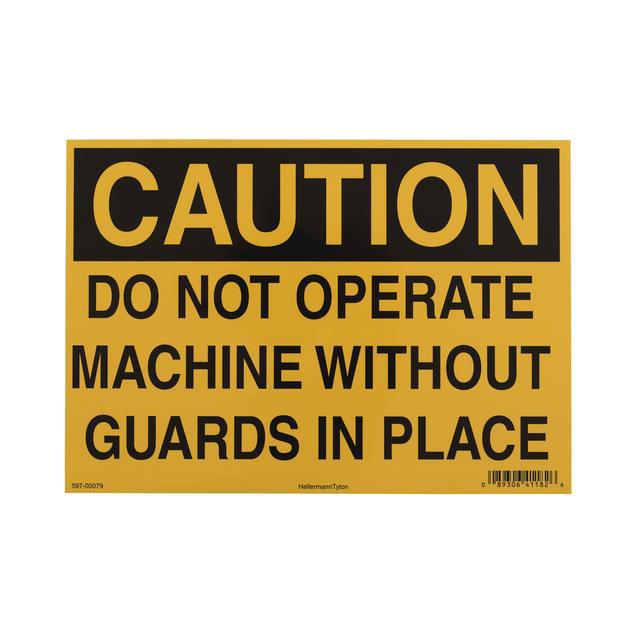 This is manufactured by HellermannTyton. The manufacturer part number is 597-00099. Label with a size of 14.00" l x 10.00" w (355.6mm x 254.0mm). It is assigned with possible HTSUS value of 3919.90.5060. It has a classic black legend, yellow background colour. The product is made from highly stable and reliable vinyl. Its typical moisture sensitivity level is not applicable. In addition, bulk is the available packaging type of the product. A bespoke label is a caution. do not operate machine without guards in place label. The product is suitable for use with warning. It has a long 4 weeks standard lead time. The hellermanntyton's product offers user-desired applications. Moreover, it corresponds to 597-00, a base product number of the product. The product is designated with the ear99 code number.