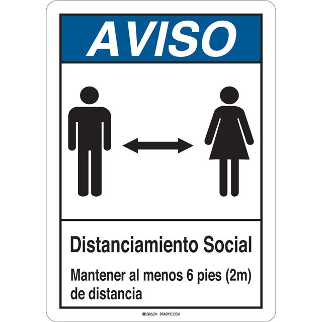This is manufactured by Brady Corporation. The manufacturer part number is 170291. Label with a size of 10.00" l x 7.00" w (254.0mm x 177.8mm). The product is not applicable. It is assigned with possible HTSUS value of 3926.90.9985. It is shipped in bulk package . It has a classic black legend, white background colour. The product b-302, is a highly preferred choice for users. The product is made from highly stable and reliable polyester. Its typical moisture sensitivity level is not applicable. A bespoke label is a aviso. distanciamiento social. mantener al menos 6 pies (2m) de distancia label. The product is suitable for use with notice. The product is designated with the ear99 code number.