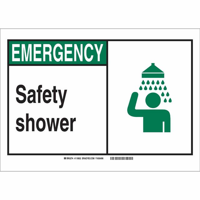 This is manufactured by Brady Corporation. The manufacturer part number is 120179. Label with a size of 7.00" l x 5.00" w (177.8mm x 127.0mm). The product is rohs3 compliant. It is assigned with possible HTSUS value of 3926.90.9985. It is shipped in bulk package . It has a classic black and green legend, white background colour. The product brady®, is a highly preferred choice for users. The product is made from highly stable and reliable polyester. In addition, it is reach unaffected. Its typical moisture sensitivity level is not applicable. A bespoke label is a emergency. safety shower label. The product is suitable for use with emergency. It has a long 4 weeks standard lead time. The product is designated with the ear99 code number.