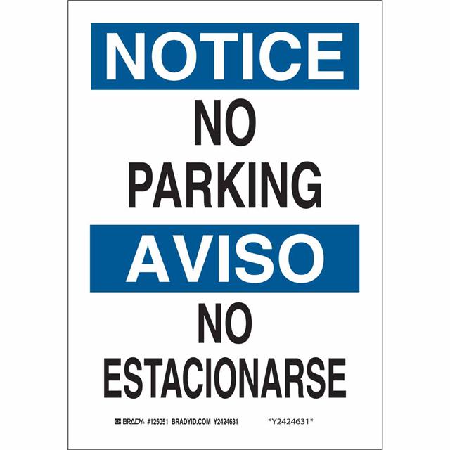 This is manufactured by Brady Corporation. The manufacturer part number is 125054. Label with a size of 14.00" l x 10.00" w (355.6mm x 254.0mm). The product is rohs3 compliant. It is assigned with possible HTSUS value of 3926.90.9985. It is shipped in bulk package . It has a classic black and blue legend, white background colour. The product brady®, is a highly preferred choice for users. The product is made from highly stable and reliable polyester. In addition, it is reach unaffected. Its typical moisture sensitivity level is not applicable. A bespoke label is a notice/aviso. no parking/no estacionarse label. The product is suitable for use with notice. It has a long 4 weeks standard lead time. The product is designated with the ear99 code number.