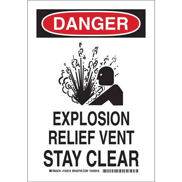 This is manufactured by Brady Corporation. The manufacturer part number is 126221. Label with a size of 14.00" l x 10.00" w (355.6mm x 254.0mm). The product is rohs3 compliant. It is assigned with possible HTSUS value of 3926.90.9989. It has a classic black and red legend, white background colour. The product brady®, is a highly preferred choice for users. The product is made from highly stable and reliable polyester. In addition, it is reach unaffected. Its typical moisture sensitivity level is not applicable. In addition, bulk is the available packaging type of the product. A bespoke label is a danger. explosion relief vent stay clear label. The product is suitable for use with danger. It has a long 4 weeks standard lead time. The brady corporation's product offers user-desired applications. The product is designated with the ear99 code number.