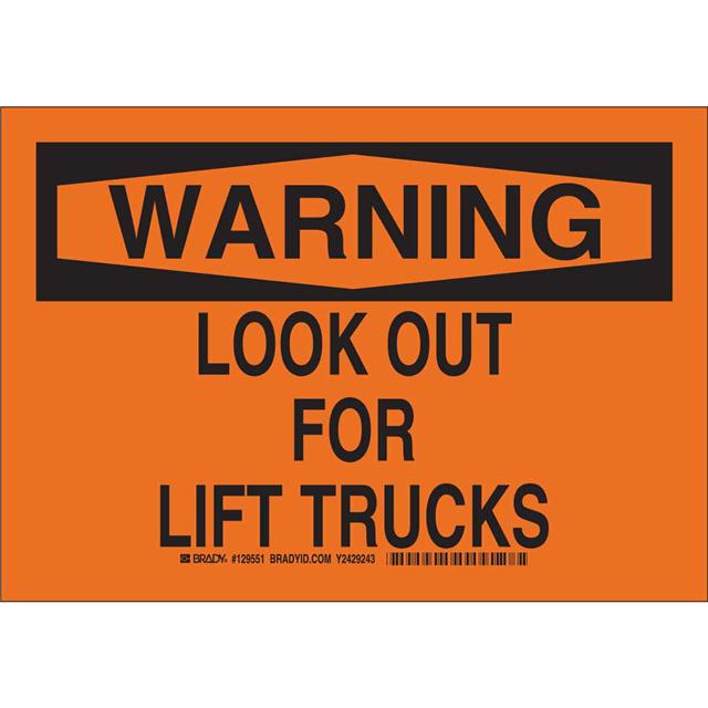 This is manufactured by Brady Corporation. The manufacturer part number is 129550. Label with a size of 10.00" l x 7.00" w (254.0mm x 177.8mm). The product is rohs3 compliant. It is assigned with possible HTSUS value of 3926.90.9985. It is shipped in bulk package . It has a classic black legend, orange background colour. The product brady®, is a highly preferred choice for users. The product is made from highly stable and reliable polyester. In addition, it is reach unaffected. Its typical moisture sensitivity level is not applicable. A bespoke label is a warning. look out for lift trucks label. The product is suitable for use with warning. The product is designated with the ear99 code number.