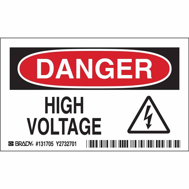 This is manufactured by Brady Corporation. The manufacturer part number is 131705. Label with a size of 5.00" l x 3.00" w (127.0mm x 76.2mm). The product is rohs3 compliant. It is assigned with possible HTSUS value of 3926.90.9985. It is shipped in bulk package . It has a classic black and red legend, white background colour. The product brady®, is a highly preferred choice for users. The product is made from highly stable and reliable polyester. In addition, it is reach unaffected. Its typical moisture sensitivity level is not applicable. A bespoke label is a danger. high voltage label. The product is suitable for use with danger. It has a long 4 weeks standard lead time. The product is designated with the ear99 code number.