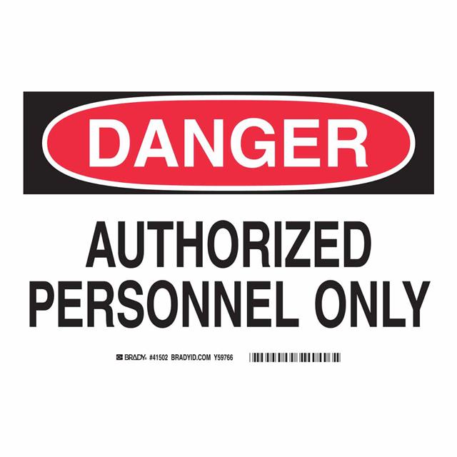 This is manufactured by Brady Corporation. The manufacturer part number is 41502. Label with a size of 10.00" l x 7.00" w (254.0mm x 177.8mm). The product is rohs3 compliant. It is assigned with possible HTSUS value of 3926.90.9985. It is shipped in bulk package . It has a classic black and red legend, white background colour. The product brady®, is a highly preferred choice for users. The product is made from highly stable and reliable polyester. In addition, it is reach unaffected. Its typical moisture sensitivity level is not applicable. A bespoke label is a danger. authorized personnel only label. The product is suitable for use with danger. It has a long 4 weeks standard lead time. The product is designated with the ear99 code number.