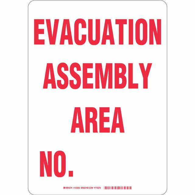 This is manufactured by Brady Corporation. The manufacturer part number is 103593. Label with a size of 14.00" l x 10.00" w (355.6mm x 254.0mm). The product is rohs3 compliant. It is assigned with possible HTSUS value of 3926.90.9989. It has a classic red legend, white background colour. The product brady®, is a highly preferred choice for users. The product is made from highly stable and reliable polyester. In addition, it is reach unaffected. Its typical moisture sensitivity level is not applicable. In addition, bulk is the available packaging type of the product. A bespoke label is a evacuation assembly area no label. The product is suitable for use with notice. It has a long 4 weeks standard lead time. The brady corporation's product offers user-desired applications. The product is designated with the ear99 code number.