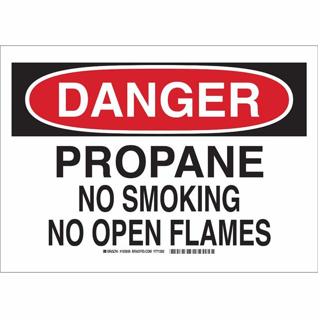 This is manufactured by Brady Corporation. The manufacturer part number is 103925. Label with a size of 14.00" l x 10.00" w (355.6mm x 254.0mm). The product is rohs3 compliant. It is assigned with possible HTSUS value of 3926.90.9989. It has a classic black and red legend, white background colour. The product brady®, is a highly preferred choice for users. The product is made from highly stable and reliable polyester. In addition, it is reach unaffected. Its typical moisture sensitivity level is not applicable. In addition, bulk is the available packaging type of the product. A bespoke label is a danger. propane no smoking no open flames label. The product is suitable for use with danger. It has a long 4 weeks standard lead time. The brady corporation's product offers user-desired applications. The product is designated with the ear99 code number.