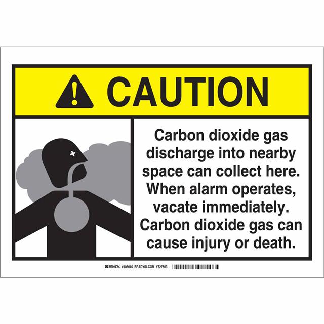 This is manufactured by Brady Corporation. The manufacturer part number is 106043. Label with a size of 10.00" l x 7.00" w (254.0mm x 177.8mm). The product is rohs3 compliant. It is assigned with possible HTSUS value of 8310.00.0000. It is shipped in bulk package . It has a classic black, gray and yellow legend, white background colour. The product brady®, is a highly preferred choice for users. The product is made from highly stable and reliable aluminum. In addition, it is reach unaffected. Its typical moisture sensitivity level is not applicable. A bespoke label is a caution. carbon dioxide gas discharge into nearby space can collect here. when alarm operates, vacate immediately. carbon diox… label. The product is suitable for use with caution. It has a long 4 weeks standard lead time. The product is designated with the ear99 code number.