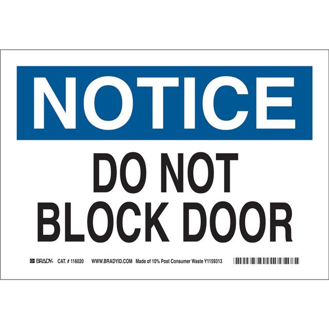 This is manufactured by Brady Corporation. The manufacturer part number is 116020. Label with a size of 10.00" l x 7.00" w (254.0mm x 177.8mm). The product is not applicable. It is assigned with possible HTSUS value of 4911.99.8000. It is shipped in bulk package . It has a classic black and blue legend, white background colour. The product brady®, is a highly preferred choice for users. The product is made from highly stable and reliable paper. In addition, it is reach unaffected. Its typical moisture sensitivity level is not applicable. A bespoke label is a notice. do not block door label. The product is designated with the ear99 code number.