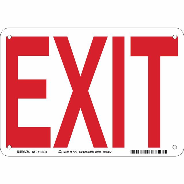 This is manufactured by Brady Corporation. The manufacturer part number is 116078. Label with a size of 10.00" l x 7.00" w (254.0mm x 177.8mm). The product is not applicable. It is assigned with possible HTSUS value of 3926.90.9989. It has a classic red legend, white background colour. The product brady®, is a highly preferred choice for users. The product is made from highly stable and reliable polypropylene. In addition, it is reach unaffected. Its typical moisture sensitivity level is not applicable. In addition, bulk is the available packaging type of the product. A bespoke label is a exit label. The product is suitable for use with notice. It has a long 4 weeks standard lead time. The brady corporation's product offers user-desired applications. The product is designated with the ear99 code number.
