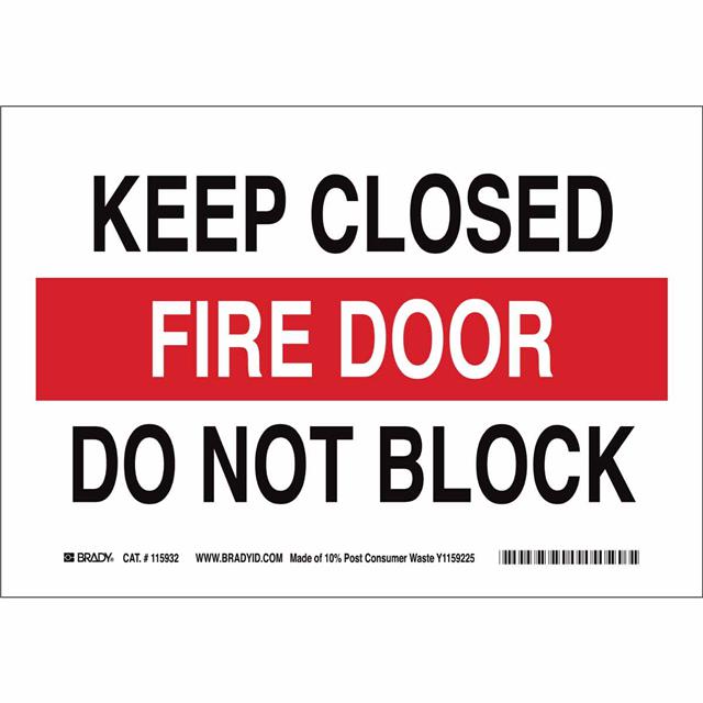 This is manufactured by Brady Corporation. The manufacturer part number is 116096. Label with a size of 10.00" l x 7.00" w (254.0mm x 177.8mm). The product is not applicable. It is assigned with possible HTSUS value of 3926.90.9985. It is shipped in bulk package . It has a classic black and red legend, white background colour. The product brady®, is a highly preferred choice for users. The product is made from highly stable and reliable polypropylene. In addition, it is reach unaffected. Its typical moisture sensitivity level is not applicable. A bespoke label is a firedoor. keep closed fire door do not block label. The product is suitable for use with fire. It has a long 4 weeks standard lead time. The product is designated with the ear99 code number.