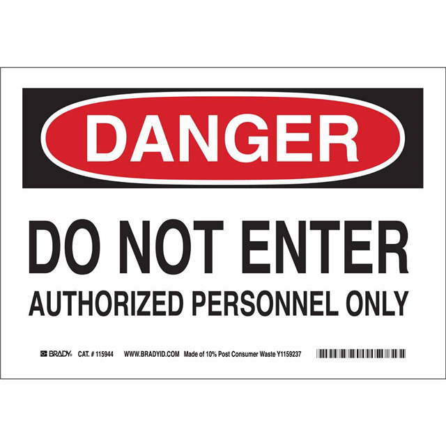 This is manufactured by Brady Corporation. The manufacturer part number is 116109. Label with a size of 14.00" l x 10.00" w (355.6mm x 254.0mm). The product is not applicable. It is assigned with possible HTSUS value of 3926.90.9989. It has a classic black and red legend, white background colour. The product brady®, is a highly preferred choice for users. The product is made from highly stable and reliable polypropylene. In addition, it is reach unaffected. Its typical moisture sensitivity level is not applicable. In addition, bulk is the available packaging type of the product. A bespoke label is a danger. do not enter authorized personnel only label. The product is suitable for use with warning. It has a long 4 weeks standard lead time. The brady corporation's product offers user-desired applications. The product is designated with the ear99 code number.